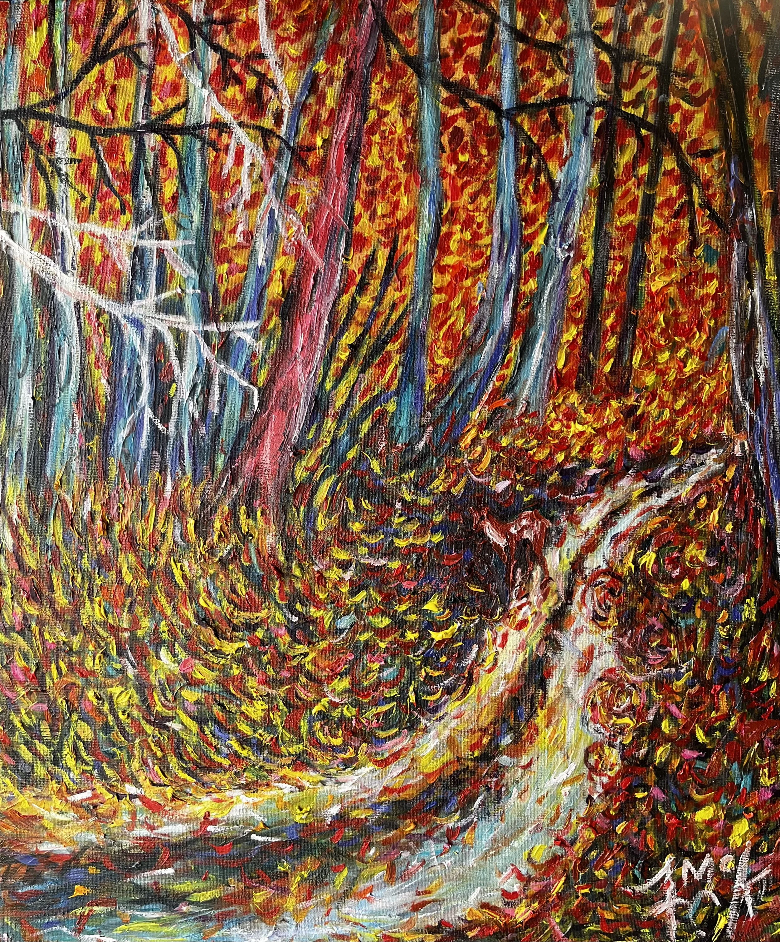 The wind moves fiercely through falling leaves, bending trees, stirring old paths…