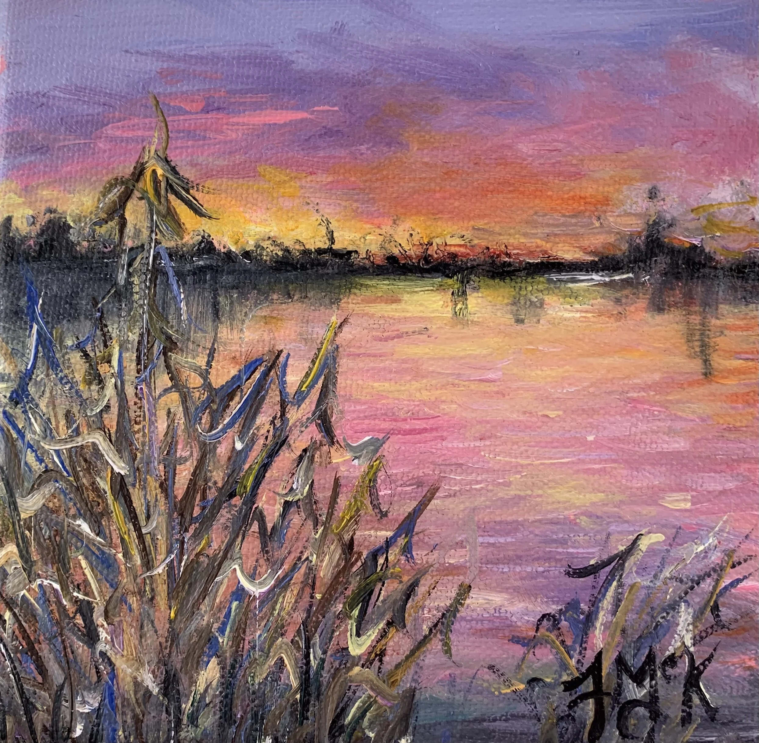 Winter Lake Reflections, 6” x 6”, Oil on Canvas £250