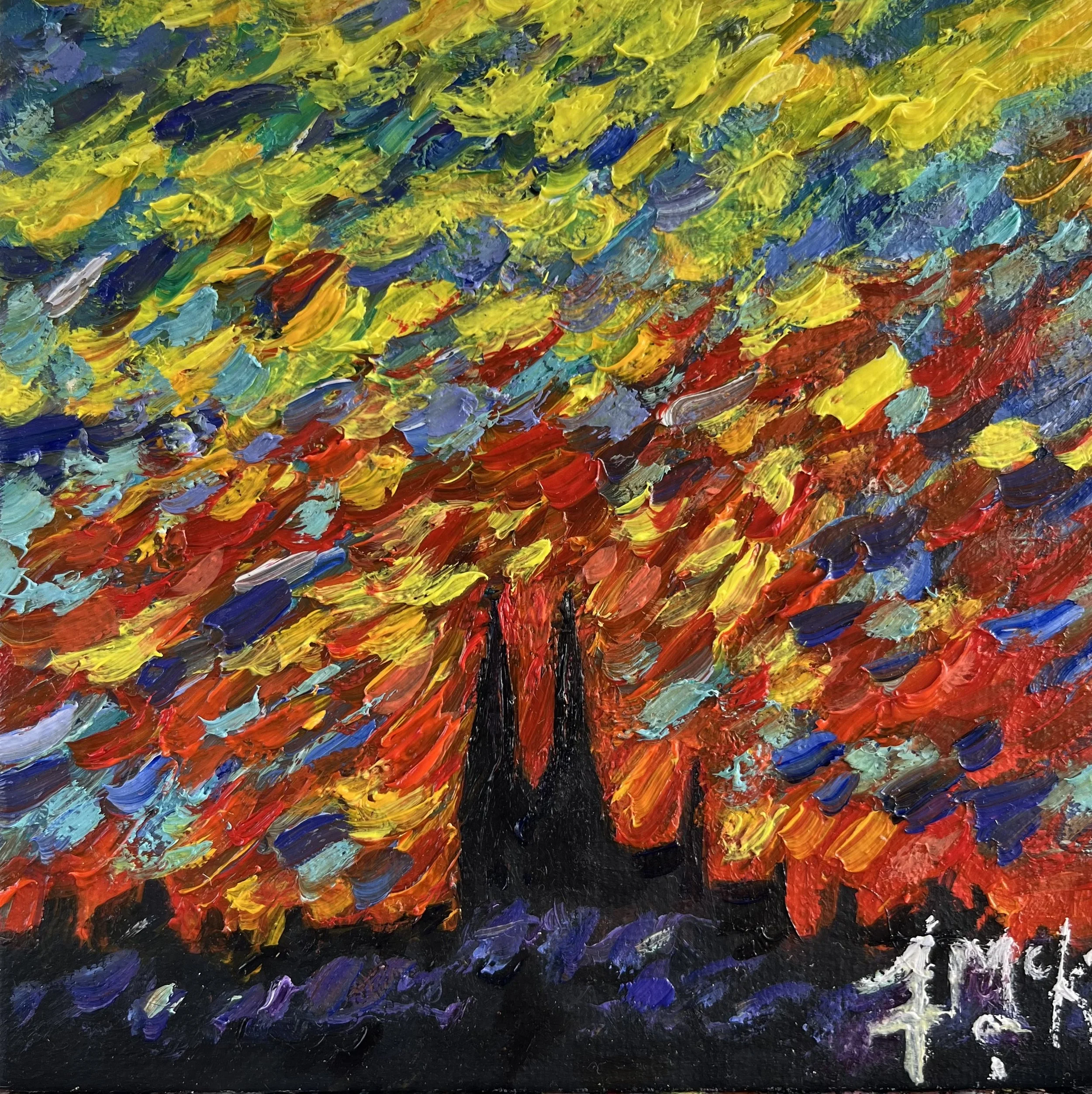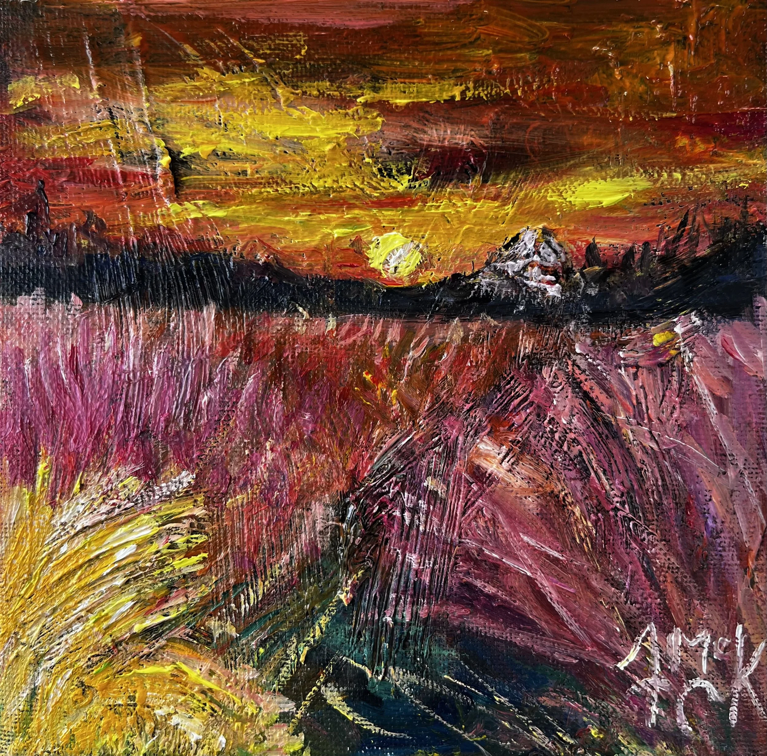 Red Sunset at Lake Dunlewey Donegal, 6” x 6”,